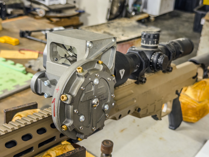 This time around, the reticle was not the main reason behind my visit.  John is a creative guy and they do several interesting things there.  Everything they do is clever and outside the box.  For example, to the best of my knowledge, they were the first to come up with different ways to shift the POI for ELR shooting with their TARAC devices.  Alpha and Bravo TARAC devices use prisms to shift the zero of the optic, but a predetermined angle.  I have a flip-up Alpha TARAC set up to help with my subsonic ELR pursuits.  Bravo TARAC attaches the prism to the objective of the riflescope which works beter with large objective designs.  Since Tacom came up with it, the idea has been pirated by a couple of people, most prominently by Nightforce.  Technically, Tacom has a patent on it, but this appears to be a situation where a large company (Nightforce) shamelessly muscled a small company (TacomHQ) out of their IP, knowing fully well that they have more money for lawyers.  To be fair, John does not talk about it too much, so this is just a guess on my part (although I am sure I am going to get a nastygram from Nightforce lawyers for posting this.  They seem to really enjoy pushing small independent guys around).