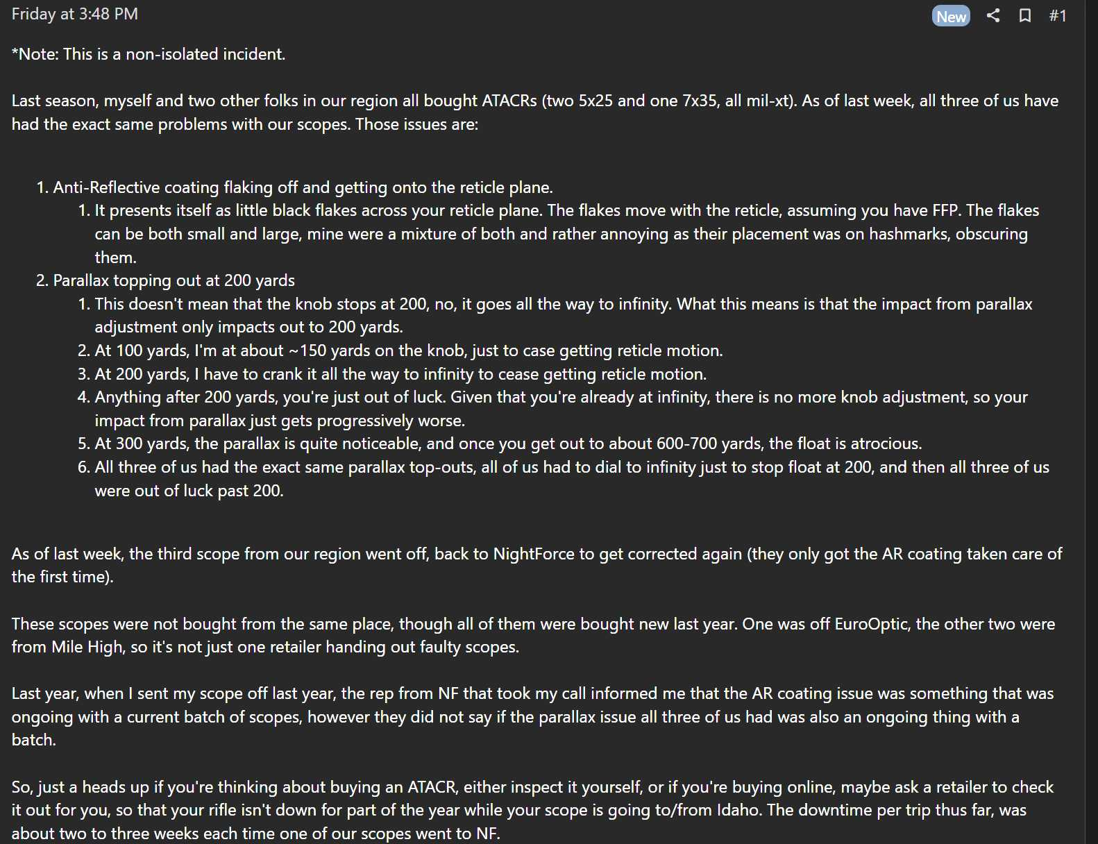 I spent even more time with the Signature LRF bino. I like it. It is going onto my list of recommendations. https://shrsl.com/4kzs1 10x42 is not my favourite configuration, but it works well enough. User interface is quite familiar. All I need from it is to give me the LOS distance and horizontal distance, which it easily does. Ranging worked pretty well to a bit beyond 2000 yards. It is probably more along th elines 1000-1200 yards on a deer though. That's plenty for my purposes. The binocular is easy to hold. Rubber coating is just right in terms of giving me a secure hold without getting too sticky. Collimation quality is good, since I did not have any real eye fatigue to worry about. Focus wheel is not showing any apparent hysteresis.